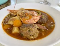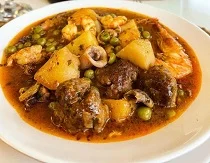 | "Pelotas" guisadas con Gamba | Berenjenas Rellenas | Albondigas con Sepia |