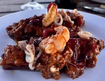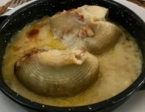 | Berenjenas Costa Brava | Calamares Rellenos de Carne | Pollo Marinero |