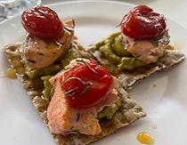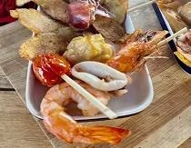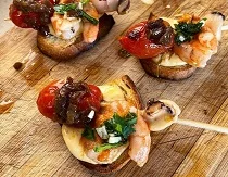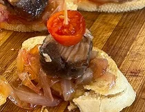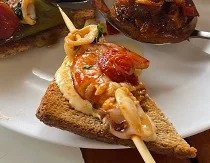 | Montadito Calamar Caramelizado | Pincho Gamba y Calamar | Montadito Salmón y Cherry |