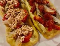 | "Coquetes" con Escalivada | Pan de Semillas con Bonito y Pimiento | Pizzetas de "Recapte" |