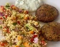 | Cuscus con Falafel y Tzatziki | Berenjena Frita con Burrata | Escalivada |