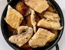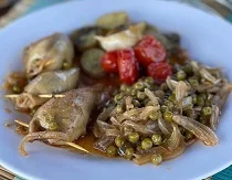 | Bacalao con Sanfaina | Platillo de Bacoreta salteada | Calamares Encebollados |