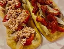 "Coquetes" con Escalivada | Pan de Semillas con Bonito y Pimiento | Pizzetas de "Recapte" |